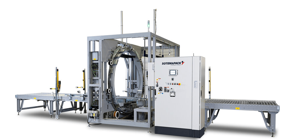 Product Description: Fully automatic orbital stretch wrapping machine with 1400 mm diameter ring to wrap smaller sized loads on 4 sides