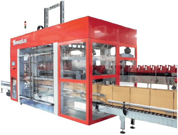 Pick and place cartoning machine for HDPE square shaped bottle.