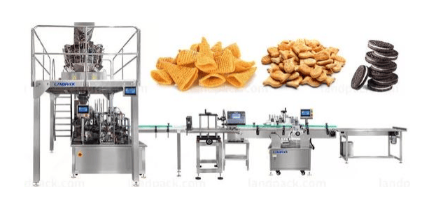 Automatic Biscuits Bugles Popcorn Bottle Cups Filling Sealing Machine Production Line
